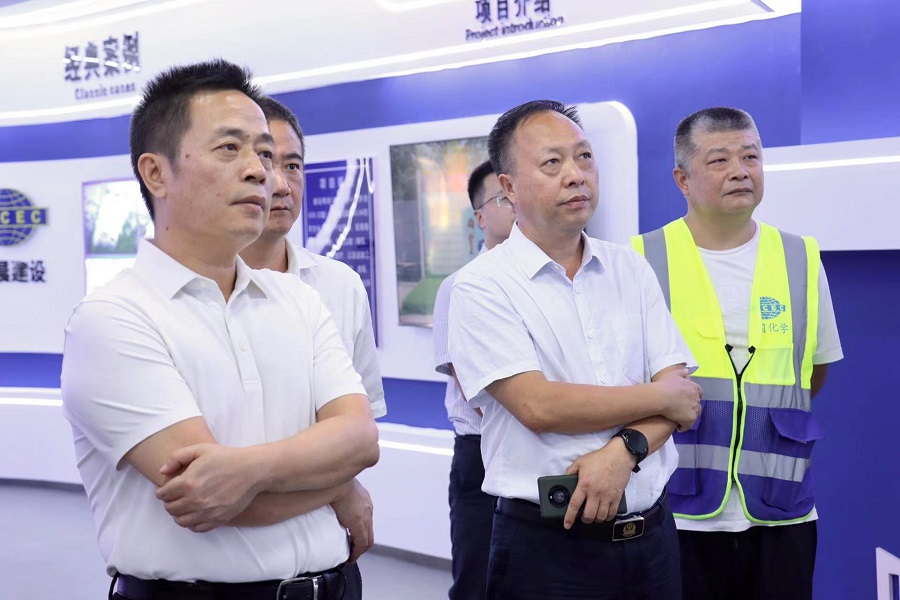 汪濤一行到EOD項(xiàng)目智慧工地展廳,查看項(xiàng)目近期建設(shè)進(jìn)展情況,聽取了關(guān)于項(xiàng)目智慧工地的各項(xiàng)技術(shù)應(yīng)用和智慧監(jiān)管平臺(tái)建設(shè)工作的匯報(bào)。