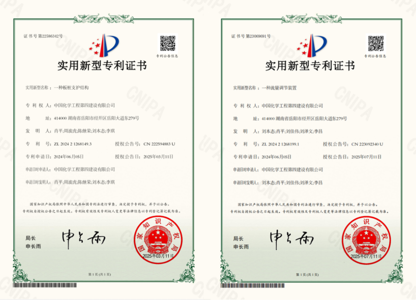近日,西部公司技術(shù)創(chuàng)新喜結(jié)碩果,自主研發(fā)的“一種板樁支護結(jié)構(gòu)”“一種流量調(diào)節(jié)裝置”兩項技術(shù)分別獲國家知識產(chǎn)權(quán)局實用新型專利授權(quán)。