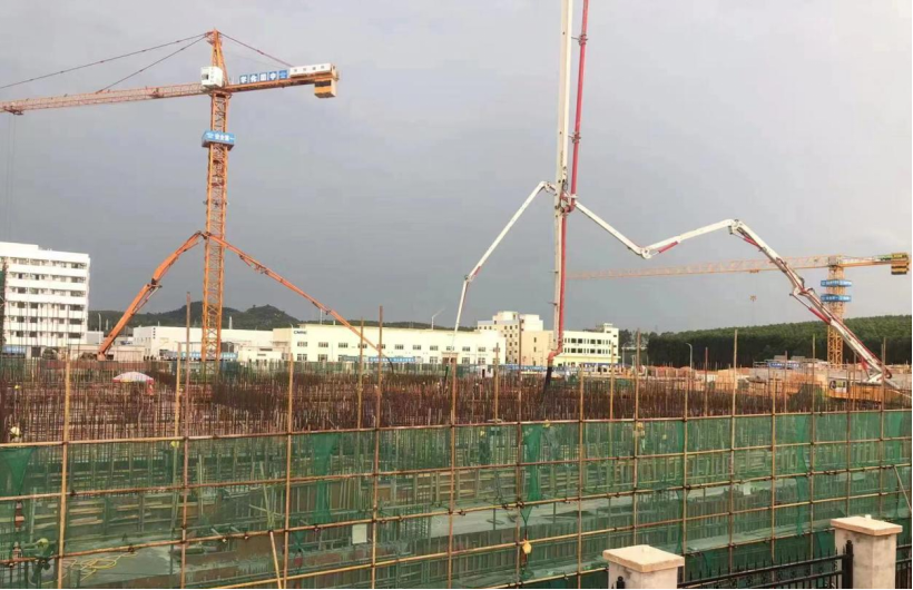 此次大方量混凝土澆筑為本工程一次澆筑方量之最,為保證澆筑順利完成,施工前,項目部組織現場施工人員召開安全技術交底,詳細講解澆筑方案,對澆筑的重點和養護階段溫差控制進行了深入地分析,讓施工人員掌握澆筑方法和技術要求,確保按照方案嚴格執行。同時,現場安排3臺天泵進行混凝土澆筑,澆筑過程中各部門合理安排人員全程旁站監督,嚴格進行過程質量管控,要求按照規范落實各項技術措施,保證每一道工序滿足技術要求,最終確保大方量混凝土一次性順利澆筑完成。