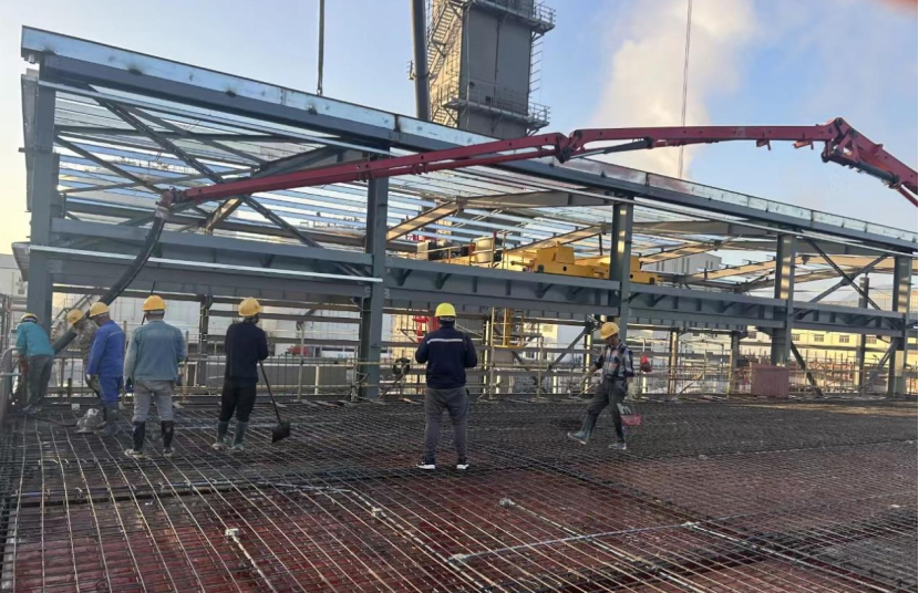 近日,隨著屋面板最后一車混凝土的澆筑完成,由華東公司承建的廣東河源杭氧空分項目配電房主體結構順利完成封頂。